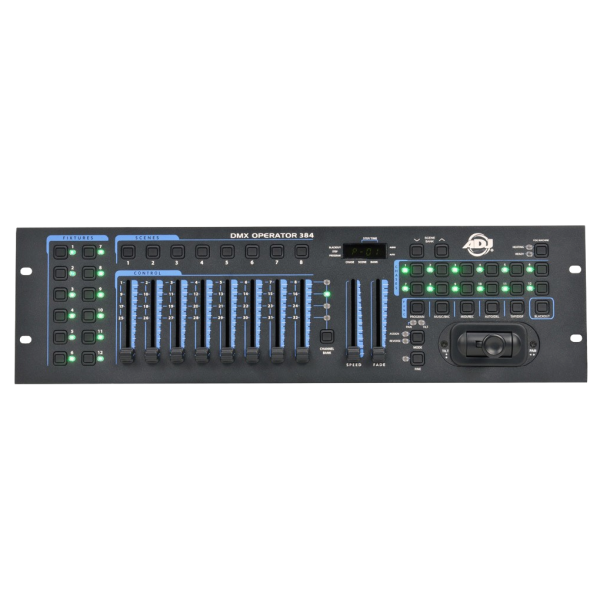 Il DMX Operator 384 è un controller montabile su rack da 19" che controlla DMX e Midi. si può controllare fino a 384 canali DMX, ed è dotato di 30 banchi di scene programmabili (240 scene programmabili in totale), 12 chase programmabili ed un joystick assegnabile.