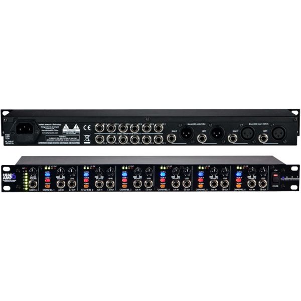 HeadAmp6 è un amplificatore per cuffie stereo da sei canali pienamente equipaggiato che include sei ingressi ausiliari per consentire un mix ‘more-me’ separato sul canale di ciascuna cuffia.