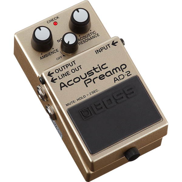Con l' AD 2 Acoustic Preamp, i chitarristi acustici possono ora sperimentare un suono naturale in qualsiasi momento dell'esecuzione. Dotato di un motore audio BOSS avanzata, questo pedale compatto racchiude una sofisticata potenza di elaborazione che smentisce le sue piccole dimensioni e la semplice interfaccia intuitiva. L'Acoustic Resonance riproduce le complesse caratteristiche di risonanza dello strumento scollegato, mentre Ambience fornisce un riverbero di livello professionale perfettamente ottimizzato per la chitarra acustica. L'AD-2 dispone anche di strumenti essenziali sul palco come un filtro notch per il controllo del feedback, una DI bilanciata per il collegamento diretto ad una PA, e una comoda funzione mute per l'accordatura e lo switch delle chitarre.