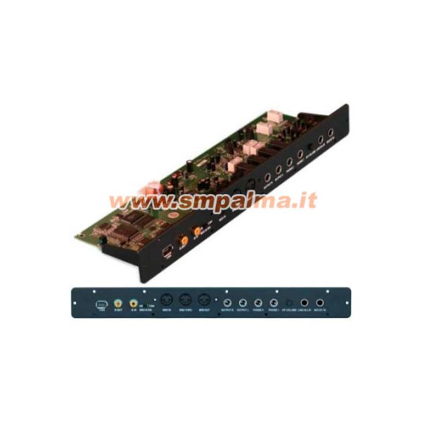La scheda include 2 ingressi e 2 uscite linea, un ingresso microfonico, 1 I/O digitale SPDIF, 2 uscite cuffia, 1 porta MIDI con IN/OUT/THRU.