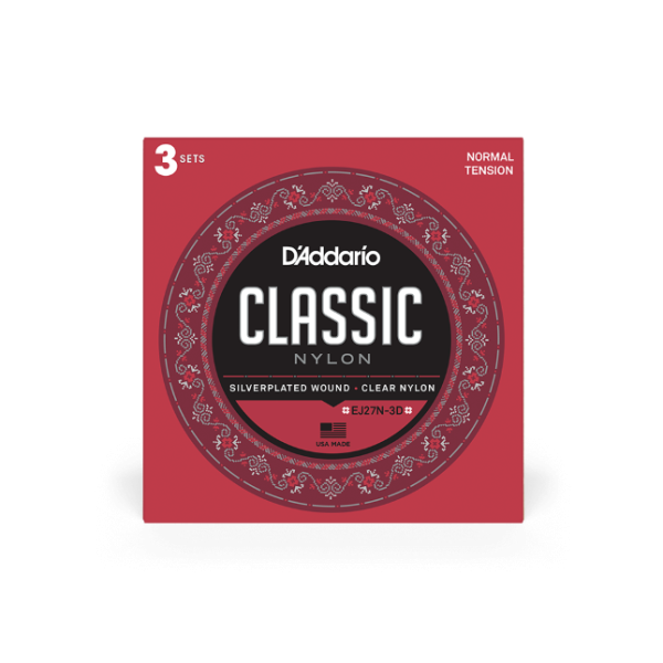 Le corde per chitarra classica in Nylon D'Addario EJ27N sono ideali per principianti, studenti e professionisti. Questo set di tensione normale contiene 3 corde in Nylon trasparente e le tre corde basse con avvolgimento in rame argentato per un equilibrio ottimale di suono caldo e lunga durata.