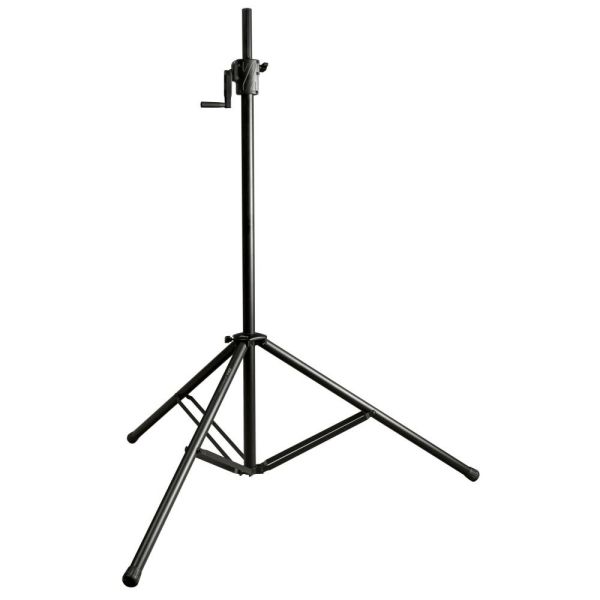 Stativo professionale per diffusori acustici e sistemi luce, realizzato in acciaio tubolare e parti in alluminio pressofuso. Dotato di meccanismo di elevazione a cremagliera, in alluminio pressofuso, con freno meccanico per garantire la massima stabilità al carico e la facilità di montaggio. Altezza regolabile da un minimo di 1880 mm ad un massimo di 3100 mm. Tubo terminale con diametro 35 mm. Giunti dei gambi realizzati in alluminio pressofuso. Colore Nero opaco.