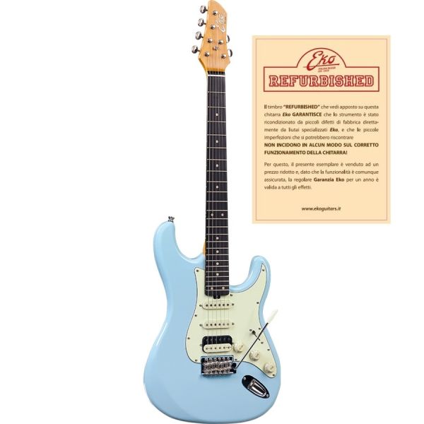 La Aire VNOS Daphne Blue è la chitarra elettrica della serie "Original V-NOS" di casa Eko Guitars, pensata per il chitarrista moderno amante del pop-rock. Presenta corpo in Pawlonia, manico in American Rock Maple e tastiera in resina Eko WPC. La configurazione dei pickup è HSS con l’humbucker splittabile a Single-Coil, il ponte è un Wilkinson Vintage tremolo e la tastiera è a 24 tasti.