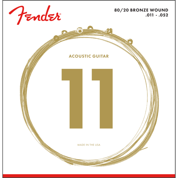 Le corde Fender 80/20 Bronze offrono un ottimo suono esaltando un sustain. La loro intensità rende particolarmente adatte alle situazioni on stage con la band. Le corde Fender 80/20 Bronze hanno suono squillante e eccezionale feel, e sono perfette per chitarre acustiche dal timbro naturalmente scuro.