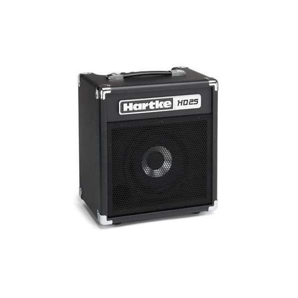 Il nuovissimo combo per basso HD 25 racchiude la tecnologia degli speaker HyDrive brevettata da Hartke in un elegante design combo in grado di arricchire notevolmente la fascia bassa e con potenza sufficiente per gestire piccoli ambienti e sale prova. L'HD25 mantiene anche l'impegno Hartke nel produrre un'amplificazione per basso di alta qualità con una durata eccezionale. L'HD25 (25 watt, driver 8") utilizza la tecnologia degli speaker HyDrive brevettata da Hartke che offre un diffusore per bassi conico ibrido (carta e alluminio). Combinando il calore e la rotondità della carta con il punch e l'attacco dell'alluminio, il design HyDrive produce un suono serio ideale per i bassisti di tutti i generi e gli stili. Ricco di funzionalità professionali, il combo HD25 è progettato per essere facile da usare e affidabile per i bassisti di tutti i livelli. Il combo offre controlli di Volume, Bass, Mid e Treble sul pannello dell'amplificatore montato in alto. E' dotato di un ingresso Aux stereo da 1/8" per suonare insieme ai brani preferiti tramite un lettore MP3 e un'uscita cuffie da 1/4" per sessioni di allenamento più intime.