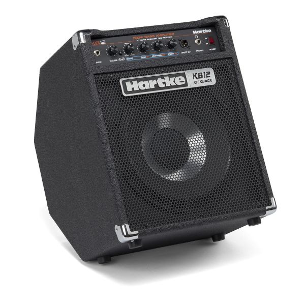 Hartke ha rinnovato suo prestigioso Kickback 12 Bass Combo con un nuovo design ad elevata potenza, leggero. Mantenendo il classico cabinet, il Kickback KB12 è ora dotato della tecnologia HyDrive Speaker brevettata da Hartke. Con 500 watt di potenza in Classe D, il Kickback KB12 è robusto e fornisce un suono di basso che passa attraverso il mix. Lo speaker HyDrive da 12" del KB12 è caratterizzato da un driver con cono ibrido di carta / alluminio realizzato con cura artigianale. La realizzazione ibrida offre una splendida combinazione di calore e attacco che non può essere ottenuta dai tradizionali altoparlanti per basso interamente in carta. Il KB12 può essere collocato in posizione reclinata per direzionalità superiore e una maggiore nitidezza della fascia alta sul palco. Con un'uscita cuffie per la pratica, un'uscita diretta XLR per le performance live e un leggero amplificatore di Classe D, il KB12 è la risposta per tutti i bassisti.
