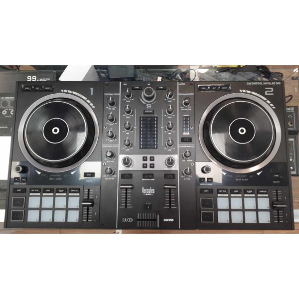 Hercules DJControl Inpulse 500 è il nuovo controller DJ che soddisfa la tua ambizione. Creato per Serato DJ Lite e DJUCED per aiutarti a iniziare a mixare come un DJ, migliorare le tue abilità e esibirti davanti ad un pubblico, DJControl Inpulse 500 ha un design professionale con una robusta placca metallica protettiva ed un sacco di funzioni eccezionali: quattro piedini estendibili/retrattili per sollevare il tuo mixaggio, un mixer hardware per gli ingressi audio, un'area dedicata Filter/FX con fantastici effetti, due ampie manopole jog sensibili al tocco per lo scratching, 16 pad RGB in gomma retroilluminati, utili guide luminose per mixare in totale fiducia...e molto altro ancora. Puoi persino mixare utilizzando i milioni di brani dei servizi di musica in streaming, tra cui TIDAL e SoundCloud GO+ in Serato DJ Lite, e Beatport LINK, Beatsource LINK e Qobuz in DJUCED. L'area Filter/FX ti permette di personalizzare il tuo DJ set con gli effetti disponibili in Serato DJ Lite e DJUCED. Puoi persino combinare l'azione del filtro con un effetto, in DJUCED. La manopola AUX Filter ti permette di aggiungere un effetto filtro ad una sorgente audio esterna (smartphone, lettore multimediale) indipendentemente dal software. A piedini aperti, il DJControl Inpulse 500 è alto 8cm. Puoi far passare i cavi sotto e protegge il controller dai drink rovesciati. A piedini aperti (ossia estesi), la base è retroilluminata. Alimentato tramite USB, il DJControl Inpulse 500 dispone delle uscite master di cui hai bisogno per collegare i tuoi altoparlanti (2 jack da 6,35mm + 2 RCA), oltre a due connettori per cuffie (mini-jack stereo da 3,5mm + jack stereo da 6,35mm). È facile mixare manualmente un brano con l’altro, grazie alle guide luminose BEATMATCH GUIDE, supportate sia in DJUCED che in Serato DJ Lite. Collega il tuo microfono all’ingresso bilanciato e regola la tua voce utilizzando le manopole High EQ e Low EQ, per poterla ascoltare distintamente mentre ti stai esibendo. L'Intelligent Music Assistant (IMA) di DJUCED ti suggerisce i brani più adatti da mettere in coda, selezionandoli dalla tua libreria musicale, oltre che da Beatport LINK, Beatsource LINK. Attiva l’Assistente per avviare la funzione Autoplay in Serato DJ Lite. Puoi regolare facilmente l'ampiezza del crossfader in base allo stile della tua musica. Usa la funzione curve switch per cambiare la curva del crossfader direttamente dal controller (mix, scratching o disattivata).