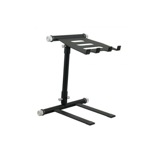 Questo supporto per laptop è la soluzione ideale per i DJ digitali. Si tratta di un supporto leggero e facile da usare, grazie a 2 maniglie. Il supporto può essere messo sotto a un mixer e il laptop troverà così la sua posizione ideale. Quando è piegato è molto compatto e si adatterà in modo facile a uno zaino insieme a un laptop.
