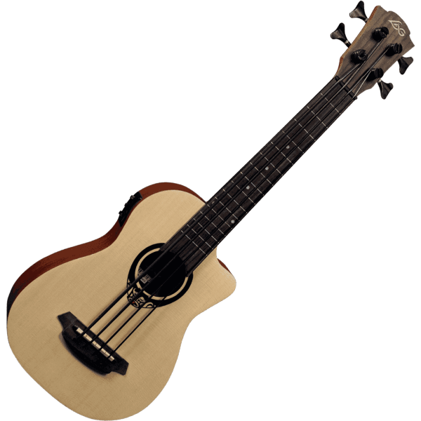 LAG TKB 150 CE Natural è un ukulele bass elettrificato con top in abete massello e finitura satinata per un tocco piacevolmente naturale ed una borsa inclusa.
