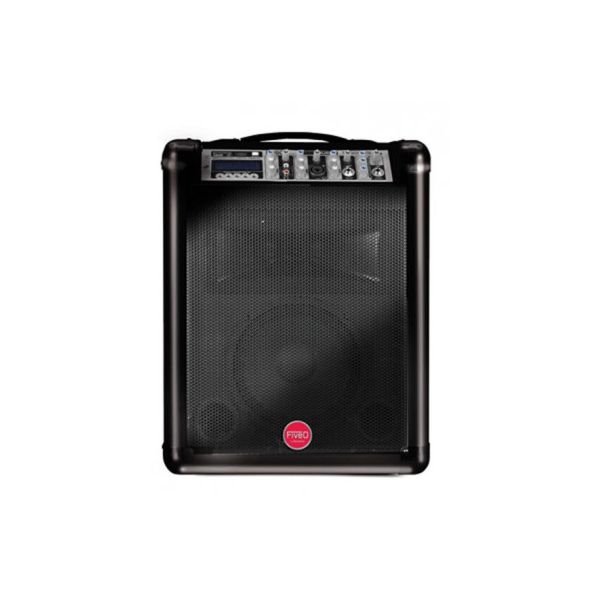Il sistema può essere alimentato dalla batteria o dalla corrente di rete e comprende: Batteria interna da 12V/7Ah, amplificatore da 50W, mixer a 3 canali con mandata ad effetto, lettore MP3/CD-Tape, 2 bande di equalizzazione (alti e bassi), controllo del Master, effetto Echo con controllo della durata del Delay, uscita principale Main per collegare altri sistemi, ingressi USB ed SD card.