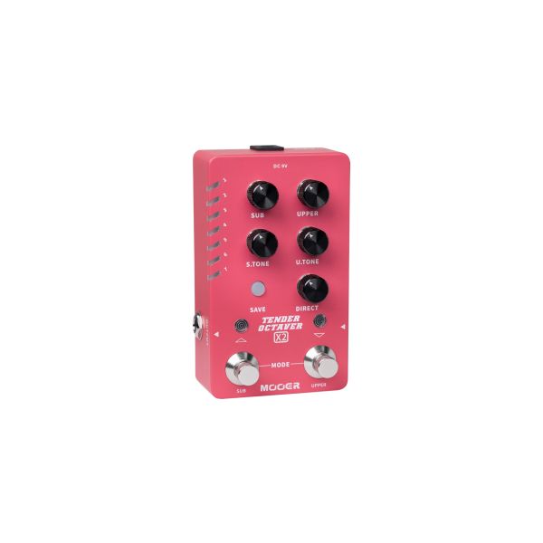 Il Tender Octaver X2 contiene anche 14 preset slot, che consentono agli utenti di salvare le combinazioni di parametri preferite con il pulsante “Save”; ogni slot può essere poi richiamato attraverso i due interruttori a pedale “Sub” e “Upper”, per un utilizzo live semplice ed intuitivo.