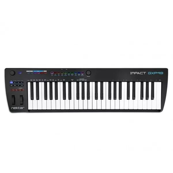 Alla base della GXP49 c'è un'action della tastiera di nuova concezione e attentamente bilanciata. I suoi 49 tasti full-size semi-pesati con velocità e aftertouch offrono un tocco piacevole, deciso e una suonabilità eccezionale. La GXP49 offre ai tastieristi tutte le giuste opzioni di espressività necessarie per il lavoro dal vivo e in studio, con pitch bend e ruote di modulazione, una presa per pedale di espressione e un jack TRS da 1/4" per il collegamento di 2 footswitch. Il pannello posteriore include anche un jack di uscita MIDI a 5 pin e una presa di alimentazione esterna per alimentare l'unità quando non è collegata tramite USB. Il pannello di controllo ottimizzato si basa sulla riuscita serie Nektar Impact GX, che consente l'integrazione DAW avanzata con controllo del trasporto esteso, selezione delle tracce e controllo del volume, nonché opzioni per aprire / chiudere finestre DAW e navigare tra le canzoni. Inoltre, l'interfaccia utente della GXP49 ha anche 14 pulsanti RGB illuminati assegnabili per programma MIDI diretto e selezione banco. Il nuovo motore Key Repeat aggiunge uno strumento intuitivo in tempo reale per la creazione di elementi ritmici stimolanti. La ripetizione è direttamente controllabile dai pulsanti RGB illuminati del GXP: una volta attivata la modalità Repet, i pulsanti consentono la selezione diretta di Repeat Rates, Accent, Interval, Swing e routing Aftertouch oppure Modulation to Velocity. Quando Repeat è attivo, il secondo encoder si trasforma in un controllo del tempo dedicato, a meno che la sincronizzazione non sia impostata su un clock MIDI esterno. In combinazione con Nektarine, Impact GXP49 offre potenti funzionalità di master-keyboard: fino a 16 plug-in VST o AU possono essere caricati nei 16 slot di Nektarine per un uso simultaneo. GXP49 offre il richiamo immediato delle patch alle configurazioni di tastiera ibrida o basata su software con il controllo diretto delle patch dai pulsanti patch RBG della GXP49 e la possibilità di definire zone, livelli e split della tastiera per tutti i plugin ospitati. Tutte le impostazioni e le combinazioni del plug-in possono essere salvate in una singola patch multipla per essere richiamate con il semplice tocco di un pulsante. Nektarine può essere eseguito come plug-in VST, AU o AAX in qualsiasi DAW compatibile o essere utilizzato come applicazione autonoma. La Impact GXP49 funziona con qualsiasi software MIDI su OSX, Windows e iOS e può anche essere utilizzata come controller MIDI standard per dispositivi MIDI esterni.