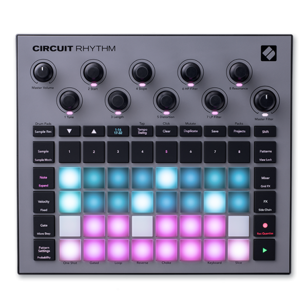 Novation Circuit Rhythm integra in un'unica soluzione tutto il necessario per il beatmaker moderno: otto sample track, registrazione integrata, effetti per le performance, il tutto in un unico dispositivo compatto autonomo e portatile. Si tratta di un dispositivo unico nel suo genere, estremamente portatile, che non richiede la presenza di un computer, ma utilizzabile anche nel classico setup in studio in sync con altri hardware e via MIDI e USB con PC o Mac. Il campionamento è alla base di Circuit Rhythm: è possibile registrare direttamente tramite gli ingressi audio, per catturare istantaneamente suoni da dischi, synth o persino un telefono. Appositamente progettato per garantire nella fase creativa la massima semplicità e flessibilità, il processo di sampling intuitivo e immediato consente di catturare 'al volo' ogni ispirazione per la massima soddisfazione. Grazie a un sequencer super veloce, ogni beatmaker potrà poi trasformare questi campionamenti in beat di grande impatto in modo semplice e immediato. Le otto tracce sample di Circuit Rhythm, ognuna con pattern a 32-step per un totale di 256 step per traccia, consentono di trovare il groove ideale con il tipico approccio "screenless" garantito da tutta la famiglia di groovebox Novation Circuit. La sezione effetti integrata consente poi di modellare pattern e suoni in tempo reale per avere beat e groove potenti ed efficaci grazie a tool unici come beat repeat, vinyl simulation e molti altri. Perfetto sia dal vivo sia in studio, Circuit Rhythm è estremamente portatile con batteria integrata ricaricabile e slot per microSD card per una totale espansione. Tramite la piattaforma software online Components di Novation, è possibile caricare sample, fare il backup di progetti, scaricare soundpack aggiuntivi realizzati da artisti e creare delle patch custom.
