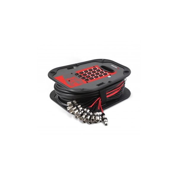 Stage Box Audio dotata di 16 canali in ingresso e 4 canali in uscita, comprensiva di 15 metri di cavo multipolare con connessioni XLR volanti.