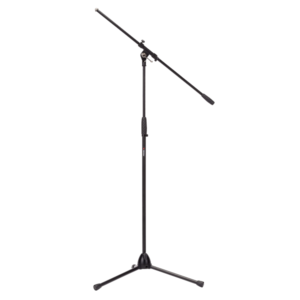 Nuova asta professionale con giraffa per microfono. Dotata di base tripoide realizzata in alluminio pressofuso con inserti in nylon per i gambi.