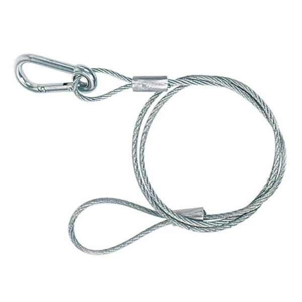 Cavo di sicurezza in acciaio inossidabile ricoperto in PVC con diametro totale di 4,8mm e moschettone di protezione.