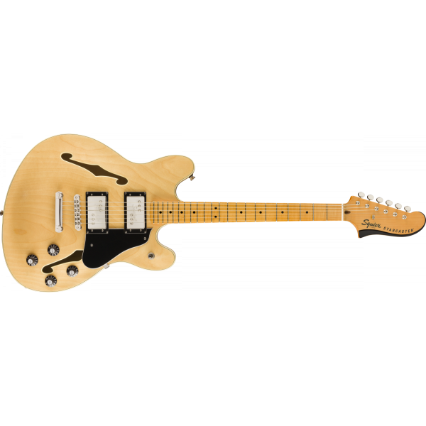 La Starcaster rivoluzionò il design delle chitarre semi-hollow con il suo corpo asimmetrico quando venne introdotta negli anni ‘70, offrendo sonorità versatili e uno stile inconsueto per i musicisti più avventurosi. La Classic Vibe Starcaster guarda al modello originale Fender, creando imponenti sonorità grazie ai suoi due pickup humbucking Wide Range progettati da Fender. Tra le sue caratteristiche più apprezzate, troviamo un manico sottile dal comodo profilo a “C”, con una tastiera dal raggio di 9.5” che facilità ulteriormente l'esecuzione, tasti narrow-tall, e attaccacorde stopbar per la massima stabilità dell'accordatura. Questo modello Squier si distingue anche per l'esclusivo profilo della paletta verniciata, lettering sulla paletta ispirato agli anni '70, lussuoso hardware nichelato ed elegante finitura del manico con verniciatura lucida per un'atmosfera old-school.
