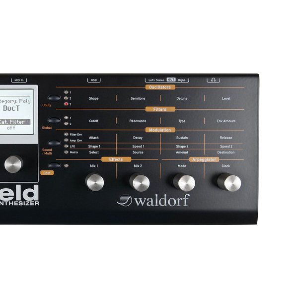 Il Modulo sintetizzatore Waldorf Blofeld combina una circuitazione a modellazione analogica dall'incredibile suono con la potenza, la comodità e l'accessibilità delle moderne funzioni digitali. L'elegante chassis è ordinato e facile da usare, con manopole di controllo in robusto alluminio e pulsanti ben posizionati per accedere ai parametri ed alle funzioni del Blofeld. L'ampio display di facile lettura permette di navigare attraverso oltre 1000 suoni e impostazioni del Blofeld. Oltre a tutto ciò aggiungi una facile connettività USB per le funzioni di editing e gestione del Blofeld. Questo sistema di sintesi unico è basato sui rivoluzionari sintetizzatori PPG WAVE dei primi anni '80. Così quando si ascolta un Blofeld per la prima volta, si riconoscono immediatamente quei suoni taglienti, incisivi e squillanti che sono stati parte integrante di tanti successi dell'era PPG.